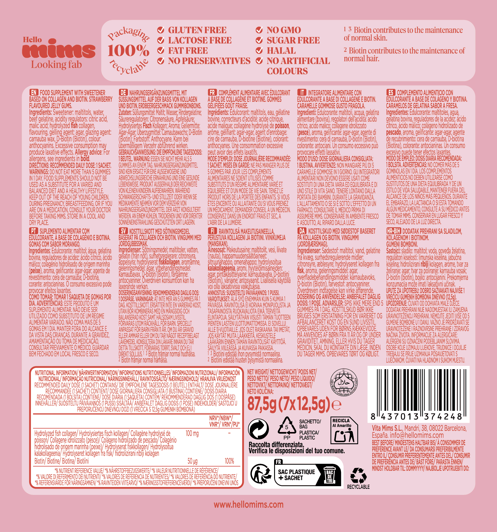 Cada bolsa incluye 7 sobres diarios de 12,5 gramos. Su fórmula ayuda a reducir el estrés oxidativo sobre la piel y está pensada para favorecer un cabello y unas uñas más fuertes, con sabor a fresa y sin azúcar, grasas, colorantes artificiales ni conservantes.