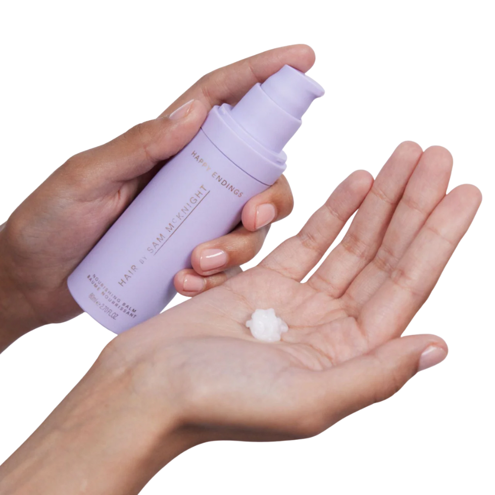 Happy Endings Nourishing Balm es un bálsamo capilar nutritivo y ligero que transforma tu melena desde el primer uso: suaviza, controla el frizz, define y sella hasta un 50 % de las puntas abiertas al instante. Aporta brillo, flexibilidad y un acabado saludable sin apelmazar.