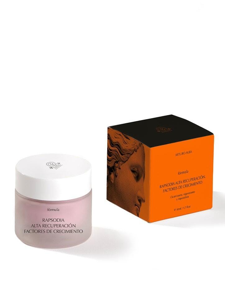 Rapsodia Alta Recuperación de Arturo Alba es un bálsamo que repara pieles desnutridas con factores de crecimiento y aceites naturales, calmando irritaciones.