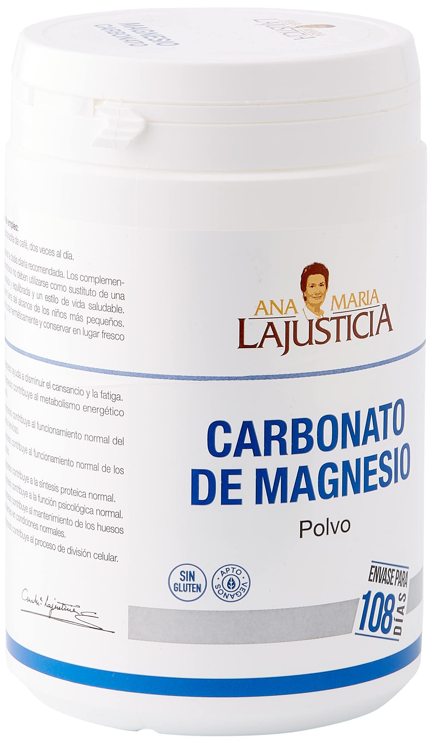 Carbonato de Magnesio de Ana María Lajusticia es un suplemento en polvo que contribuye a la energía, músculos y nervios, con efecto alcalino y digestivo.